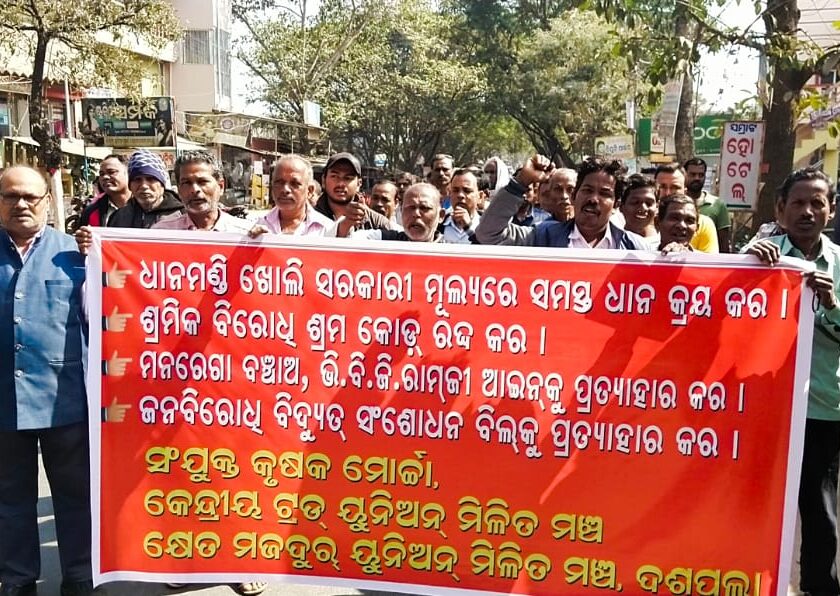 ଦଶପଲ୍ଲା, (ନୟାଗଡ଼ ଦର୍ପଣ): କେନ୍ଦ୍ରୀୟ ଶ୍ରମିକ ସଂଗଠନ ସିଆଇଟିୟୁ ଦ୍ଵାରା ପରିଚାଳିତ ଓଡ଼ିଶା ମଧ୍ୟାହ୍ନ ଭୋଜନ ପାଚିକା/ସହାୟିକା ସଂଘର ବିକ୍ଷୋଭ। ଆଜି ଦଶପଲ୍ଲା ମଣ୍ଡଳ ଶିକ୍ଷା ଅଧିଆରୀଙ୍କ କାର୍ଯ୍ୟାଳୟ ସମ୍ମୁଖରେ ବିକ୍ଷୋଭ କରିବା ସହ ଓ ମୁଖ୍ୟମନ୍ତ୍ରୀଙ୍କ ଉଦ୍ଦେଶ୍ୟରେ ଏକ ୧୨ଦଫା ସମ୍ବଳିତ ଦାବିପତ୍ର ପ୍ରଦାନ କରାଯାଇଅଛି। ବିକ୍ଷୋଭ ପୂର୍ବରୁ ଦଶପଲ୍ଲାର ଶିକ୍ଷକ ଭବନ ପରିସରରେ ଏକ ସାଧାରଣ ସଭା ସଭାପତି ଶରତ ଚନ୍ଦ୍ର ବେହେରାଙ୍କ ଅଧ୍ୟକ୍ଷତାରେ ଅନୁଷ୍ଠିତ ହୋଇ ପାଚିକାମାନଙ୍କର ବହୁବିଧ ସମସ୍ୟା ଉପରେ ଆଲୋଚନା କରାଯାଇଥିଲା। ଏହିସଭାରେ ସଂଘର ନୟାଗଡ଼ ଜିଲ୍ଲା ସମ୍ପାଦିକା ଜୟନ୍ତୀ ଦାସ, ସିଆଇଟିୟୁ ଜିଲ୍ଲା ଆବାହକ କମ୍ରେଡ୍ ବିଶ୍ଵନାଥ ମହାପାତ୍ର କୃଷକ ନେତା ବ୍ରଜବନ୍ଧୁ ପ୍ରଧାନ, ଯୁବନେତା ସୁଶାନ୍ତ ନାୟକ ଓ ସିପିଆଇ(ଏମ) ଦଶପଲ୍ଲା ଲୋକାଲ କମିଟି ସମ୍ପାଦକ ବିପିନ ବିହାରୀ ବାଜୁ ପ୍ରମୁଖ ଆଲୋଚନା କରିଥିଲେ।