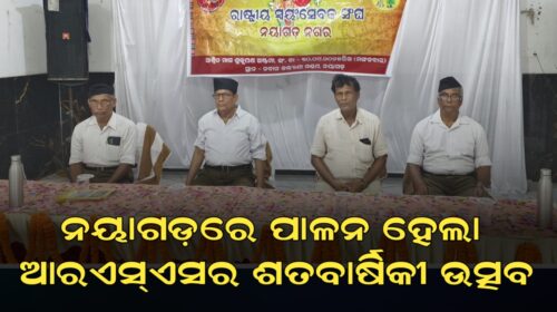 ନୟାଗଡ଼, (ନୟାଗଡ଼ ଦର୍ପଣ): ରାଷ୍ଟ୍ରୀୟ ସ୍ବୟଂସେବକ ସଂଘ (ଆରଏସ୍ଏସ୍)ର ଶତବାର୍ଷିକୀ ଉତ୍ସବ ସ୍ଥାନୀୟ ନବୀନ କଲ୍ୟାଣ ମଣ୍ଡପରେ ଅନୁଷ୍ଠିତ ହେଇଯାଇଛି। ୧୯୨୫ ମସିହା ବିଜୟା ଦଶମୀ ତିଥିରେ ଡାକ୍ତର କେଶବ ବଳିରାମ ହେଡଗେୱାର ସଂଘ ପ୍ରତିଷ୍ଠା କରିଥିଲେ । ସଂଘ ଗଠନର ଲକ୍ଷ୍ୟ ହେଉଛି ଦେଶର ନାଗରିକଙ୍କ ମଧ୍ୟରେ ସାଂସ୍କୃତିକ ସଚେତନତା, ଅନୁଶାସନ, ସେବା ଓ ସାମାଜିକ ଦାୟିତ୍ୱକୁ ପ୍ରୋତ୍ସାହନ କରିବା। ଏହି ପରିପ୍ରେକ୍ଷୀରେ ନୟାଗଡରେ ୧୫୦ରୁ ଊର୍ଦ୍ଧ୍ବ ସ୍ଵୟଂସେବକ ପୂର୍ଣ୍ଣ ଗଣବେଶରେ ଖଣ୍ଡପଡ଼ା ରୋଡସ୍ଥିତ ହନୁମାନ ମନ୍ଦିରରୁ ବାହାରି ନବୀନ କଲ୍ୟାଣ ମଣ୍ଡପଠାରେ ପହଞ୍ଚିଥିଲେ। ମଞ୍ଚ ସମ୍ମୁଖରେ ସ୍ବୟଂସେବକଙ୍କ ଦ୍ବାରା ଶାରୀରିକ ପ୍ରଦର୍ଶନ, ବ୍ୟାୟାମ, ଦଣ୍ଡ ପ୍ରୟୋଗର ପ୍ରଦର୍ଶନୀ କରାଯାଇଥିଲା। ନଗର କାର୍ଯ୍ୟବାହ ନରସିଂହ ସାହୁ ମଞ୍ଚସ୍ଥ ଅତିଥିଙ୍କ ପରିଚୟ ପ୍ରଦାନ କରିଥିଲେ। ମୁଖ୍ୟ ଅତିଥିଭାବେ ରାଜ୍ୟପାଳ ପୁରସ୍କାର ପ୍ରାପ୍ତ ଶିକ୍ଷକ ବାଲାରସେନ ପାତ୍ର ଉପସ୍ଥିତ ଥିଲେ। ସଂଘର ଅଖଳ ଭାରତୀୟ ସହ ସଦ୍ଭାବନା ପ୍ରମୁଖ ଡ. ଗୋପାଳ ପ୍ରସାଦ ମହାପାତ୍ର ମୁଖ୍ୟ ବକ୍ତା ରୂପେ ଯୋଗ ଦେଇ ସଂଘର ଗୌରବମୟ ଇତିହାସ ସମ୍ପର୍କରେ କହିଥିଲେ। ଜିଲ୍ଲା ସଂଘଚାଳକ ହରପ୍ରସାଦ ରଣସିଂହ, ନଗର ସଂଘଚାଳକ ଦୟାନିଧି ରଥ, ଜିଲ୍ଲା ପ୍ରଚାର ପ୍ରମୁଖ ରାହୁଲ ରଞ୍ଜନ ଚୌଧୁରୀ ଉପସ୍ଥିତ ଥିଲେ।