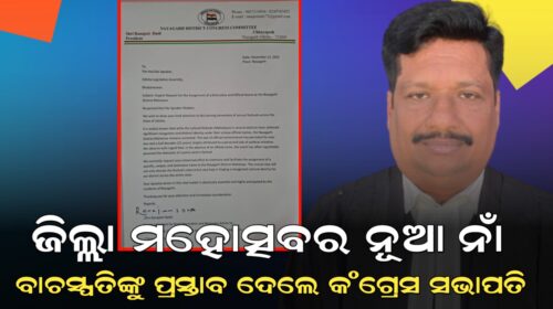 ଜିଲ୍ଲା ମହୋତ୍ସବର ସ୍ୱତନ୍ତ୍ର ନାମକରଣ ପାଇଁ ବାଚସ୍ପତିଙ୍କୁ ପ୍ରସ୍ତାବ ଦେଲେ ଜିଲ୍ଲା କଂଗ୍ରେସ ସଭାପତି