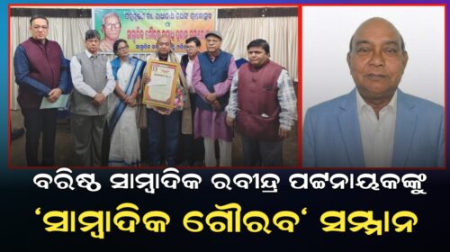 ନୟାଗଡ଼, (ନୟାଗଡ଼ ଦର୍ପଣ): ନୟାଗଡ଼ ଜିଲ୍ଲାର ବରିଷ୍ଠ ସାମ୍ବାଦିକ ରବୀନ୍ଦ୍ର କୁମାର ପଟ୍ଟନାୟକଙ୍କୁ ଆଜି ମର୍ଯ୍ୟାଦାଜନକ ରାଜ୍ୟସ୍ତରୀୟ”ସାମ୍ବାଦିକ ଗୌରବ” ସମ୍ମାନ ମିଳିଛି। ଆଜି କଟକର ସାରସ୍ବତପୀଠ ଶ୍ରୀରାମ ଚନ୍ଦ୍ର ଭବନରେ “ରାଧାନାଥ ରଥ ଫାଉଣ୍ଡେସନ ଟ୍ରଷ୍ଟ” ପକ୍ଷରୁ ଆୟୋଜିତ କାର୍ଯ୍ୟକ୍ରମରେ ଅନୁଷ୍ଠାନର ସାଧାରଣ ସମ୍ପାଦକ ତଥା “ସମାଜ”ର ପୂର୍ଵତନ ସମ୍ପାଦକ ଡ଼କ୍ଟର ସତ୍ୟ ରାୟ ପୌରାହିତ୍ୟ କରିଥିଲେ। ଏହି ବୌଦ୍ଧିକ କାର୍ଯ୍ୟକ୍ରମରେ ମୁଖ୍ୟଅତିଥି ଭାବେ ଓଡ଼ିଶା ବିଧାନସଭାର ବାଚସ୍ପତି ସୁରମା ପାଢ଼ୀ ଏବଂ ସମ୍ମାନିତ ଅତିଥି ଭାବେ ପ୍ରଖ୍ୟାତ ସାମ୍ବାଦିକ ତଥା ଖଣ୍ଡପଡ଼ାର ପୂର୍ବତନ ବିଧାୟକ ସୌମ୍ୟ ରଞ୍ଜନ ପଟ୍ଟନାୟକ, ବରିଷ୍ଠ ସାମ୍ବାଦିକ ମୁରଲୀଧର ସାମଲ, ଯୁଗ୍ମ-ସମ୍ପାଦକ ଅରବିନ୍ଦ ରାଉତରାୟ ଏବଂ ରଞ୍ଜନ ମହାପାତ୍ର ପ୍ରମୁଖ ଯୋଗଦେଇ ଶ୍ରୀ ପଟ୍ଟନାୟକଙ୍କ ଦୀର୍ଘ ସାମ୍ବାଦିକତା କ୍ଷେତ୍ରରେ ରହିଥିବା ଦକ୍ଷତା, ନିର୍ଭିକତା, ସଚୋଟତା ଓ ସମ୍ବେଦନଶୀଳତା ସମ୍ପର୍କରେ ବର୍ଣ୍ଣନା କରିଥିଲେ।