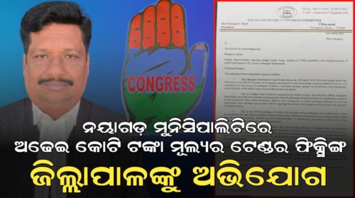 କାର୍ଯ୍ୟନିର୍ବାହୀ ଅଧିକାରୀ ତାଙ୍କ ପଦମର୍ଯ୍ୟାଦା ଅପବ୍ୟବହାର କରି ପ୍ରାୟ ଅଢେଇ କୋଟି ଟଙ୍କାର ଠିକାକାର୍ଯ୍ୟକୁ ଟେଣ୍ଡର ଫିକ୍ସିଙ୍ଗ କରାଇ ରାଜ୍ୟ ରାଜକୋଷରୁ ପ୍ରାୟ ୪୦ଲକ୍ଷ ଟଙ୍କା କ୍ଷତି ପହଞ୍ଚାଇଛନ୍ତି। ସମ୍ପୂର୍ଣ୍ଣ ଅନଲାଇନ ଟେଣ୍ଡର ପ୍ରକ୍ରିୟାରେ ଯଦି ଠିକାଦାର ଚୟନ କରାଯାଇ ଥାନ୍ତା ତେବେ ସରକାରଙ୍କୁ ପ୍ରାୟ ୪୦ଲକ୍ଷ ଟଙ୍କା ହରିଲୁଟ ହୋଇ ନଥାନ୍ତା ବୋଲି କଂଗ୍ରେସ ପକ୍ଷରୁ କୁହାଯାଇଛି। ଜିଲ୍ଲାପାଳ ଏହାର ଉପଯୁକ୍ତ ତଦନ୍ତ ପାଇଁ ନିର୍ଦ୍ଦେଶ ପ୍ରଦାନ କରନ୍ତୁ ଏବଂ ତଦନ୍ତ ରିପୋର୍ଟ ଆସିବା ଯାଏଁ ଏହି ୧୬ ଗୋଟି କାର୍ଯ୍ୟର କାର୍ଯ୍ୟାଦେଶ ପ୍ରଦାନ ଉପରେ ପ୍ରତିବନ୍ଧକ ଲଗାଇବା ପାଇଁ ଶ୍ରୀ ଦାଶ ଜିଲ୍ଲାପାଳଙ୍କୁ ସ୍ମାରକପତ୍ର ପ୍ରଦାନ କରିଛନ୍ତି। ଏନେଇ ନୟାଗଡ଼ ମୁନିସିପାଲିଟି କାର୍ଯ୍ୟନିର୍ବାହୀ ଅଧିକାରୀଙ୍କୁ ଯୋଗାଯୋଗ କରାଯାଇଥିବା ବେଳେ ଯୋଗାଯୋଗ ସମ୍ଭବପର ହୋଇନଥିଲା।