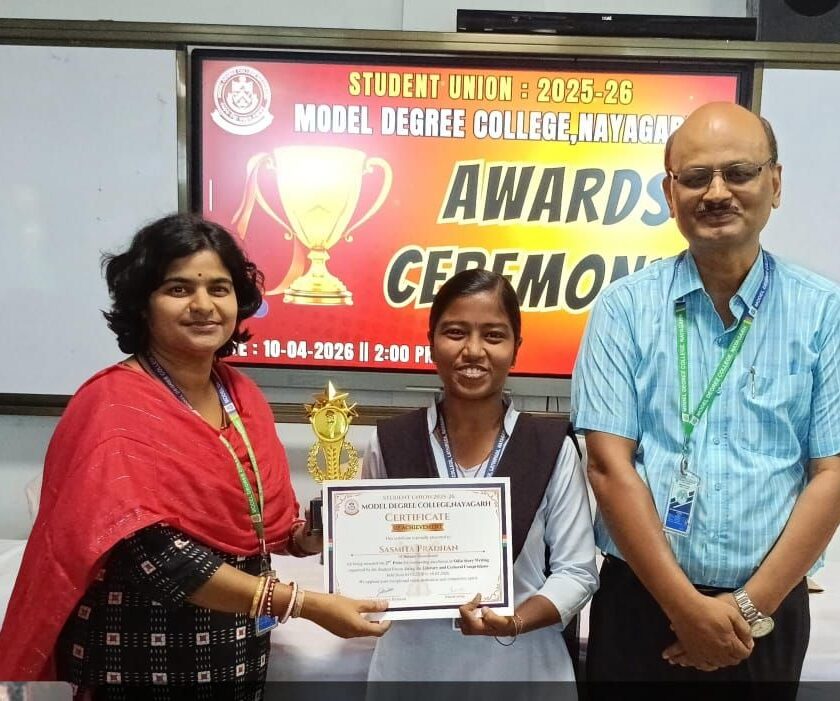 ନୟାଗଡ଼, (ନୟାଗଡ଼ ଦର୍ପଣ): ଛାତ୍ରଛାତ୍ରୀମାନଙ୍କ ମଧ୍ୟରେ ଥିବା ଲୁକ୍କାୟିତ ପ୍ରତିଭାର ସାମଗ୍ରିକ ବିକାଶ ତଥା ଉତ୍କର୍ଷର ପ୍ରତିଫଳନ ଲକ୍ଷ୍ୟ ନେଇ ସ୍ଥାନୀୟ ଲାଠିପଡ଼ାସ୍ଥିତ ମଡେଲ ଡିଗ୍ରୀ କଲେଜ ପରିସରରେ ବାର୍ଷିକ ପୁରସ୍କାର ବିତରଣ ଉତ୍ସବ ୨୦୨୫ ଅନୁଷ୍ଠିତ ହୋଇଯାଇଅଛି। ଛାତ୍ର ସଂସଦ ଉପଦେଷ୍ଟା ମଣ୍ଡଳୀର ସଦସ୍ୟ ମଧୁସ୍ମିତା ମହାପାତ୍ର, ଡକ୍ଟର ପ୍ରକାଶ କୁମାର ସାହୁ, ଡକ୍ଟର ଅନୀୟ କୁମାର ସାମନ୍ତରା, ବିଜୟ କୁମାର ସାହୁଙ୍କ ସୁପରିଚାଳନାରେ ଏହି କାର୍ଯ୍ୟକ୍ରମ ପରିଚାଳିତ ହୋଇଥିଲା।