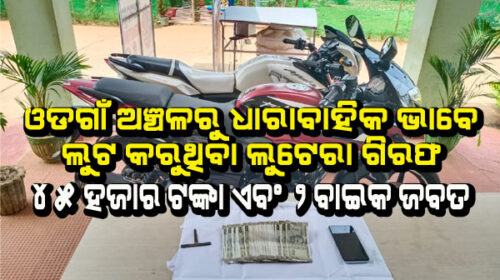 ଓଡଗାଁ ଅଞ୍ଚଳରୁ ଧାରାବାହିକ ଭାବେ ଲୁଟ କରୁଥିବା ଲୁଟେରା ଗିରଫ, ୪୫ ହଜାର ଟଙ୍କା ଏବଂ ୨ ବାଇକ ଜବତ