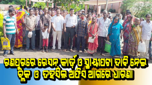 ରଣପୁରରେ ରେସନ୍ କାର୍ଡ଼ ଓ ସ୍ଥାୟୀପଟା ଦାବି ନେଇ ବ୍ଲକ ଓ ତହସିଲ ଅଫିସ ଆଗରେ ଧାରଣା