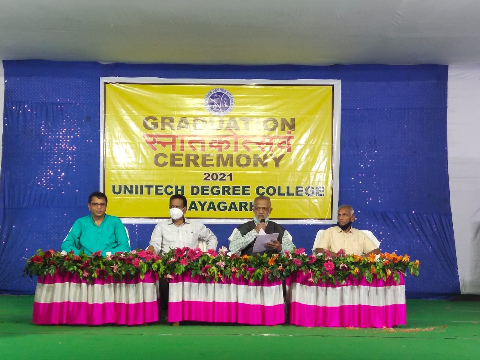 ନୟାଗଡ଼,(ନୟାଗଡ଼ ଦର୍ପଣ): ନୟାଗଡ଼ ସ୍ଥିତ ୟୁନିଟେକ ମହାବିଦ୍ୟାଳୟରେ ସ୍ନାତ୍ତକୋତ୍ସବମ ପାଳିତ ହୋଇଯାଇଛି । ଏଥିରେ ମୁଖ୍ୟ ଅତିଥି ଭାବେ ନୟାଗଡ଼ ସ୍ୱୟଂଶାସିତ ମହାବିଦ୍ୟାଳୟର ଅଧ୍ୟକ୍ଷ ସୁରେଶ କୁମାର ପ୍ରଧାନ ଯୋଗ ଦେବା ସହ ୟୁନିଟେକ ମହାବିଦ୍ୟାଳୟର ଅଧ୍ୟକ୍ଷ ସନ୍ତୋଷ କୁମାର ପାଢ଼ୀ ଏବଂ ବାଉରୀ ବନ୍ଧୁ ମେମୋରିଆଲ ଟ୍ରଷ୍ଟର ମୁଖ୍ୟ ସମାଜସେବୀ ପ୍ରମୋଦ ଚନ୍ଦ୍ର ପୃଷ୍ଟି ଓ ଚେୟାରମ୍ୟାନ ପ୍ରଦୀପ କୁମାର ପୃଷ୍ଟି ଯୋଗ ଦେଇଥିଲେ । ଏହି କାର୍ଯ୍ୟକ୍ରମରେ ସ୍ନାତ୍ତକ ଛାତ୍ର ଛାତ୍ରୀଙ୍କୁ ସାର୍ଟିଫିକେଟ ବଣ୍ଟନ ସହ ଡିପାର୍ଟମେଣ୍ଟଟପ୍ପର ମାନଙ୍କୁ ଉପଢୌକନ ଦେଇ ପୁରସ୍କୃତ କରଯାଇଥିଲା। ମୁଖ୍ୟ ଅତିଥି ଅଧ୍ୟକ୍ଷ ସୁରେଶ ପ୍ରଧାନ ପିଲାମାନଙ୍କୁ ଆଶୀର୍ବାଦ ଦେବା ସହ ସ୍ନାତ୍ତକ ପରେ କିଭଳି ନୂତନ ଜୀବନ ଅୟମାରମ୍ଭ କରିହେବ ତାହା ଉପରେ ଦିଗଦର୍ଶନ ଦେଇଥିଲେ । କଲେଜର ବିଭିନ୍ନ ବିଭାଗର ଟପ୍ପର ହୋଇଥିବା ଛାତ୍ରଛାତ୍ରୀ ଯଥା ଅଭିଜିତ ପାଣିଗ୍ରାହୀ, ରିତୁଲ ଷଢ଼ଙ୍ଗୀ, ଗୀତାଞ୍ଜଳୀ ଦେଓ, ଶ୍ରଦ୍ଧା ଶୁଭଦର୍ଶିନୀ, ସେଲିଆ ପଟ୍ଟନାୟକ, ମିହିର କୁମାର ମହାକୁଡ଼, ସାଇ ବିଶ୍ୱନାଥ ନାୟକଙ୍କୁ ମାନପତ୍ର ଓ ଉପଢୌକନ ଦେଇ ସମର୍ଦ୍ଧନା ଦିଆଯାଇଥିଲା । ପରିଶେଷରେ ଅଧ୍ୟକ୍ଷ ଶ୍ରୀଯୁକ୍ତ ପାଢ଼ୀ ଧନ୍ୟବାଦ ଅର୍ପଣ କରି ସଭା ସଙ୍ଗ କରିଥିଲେ।