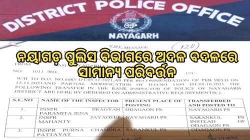 ନୟାଗଡ଼ ପୁଲିସ ବିଭାଗରେ ଅଦଳବଦଳରେ ସାମାନ୍ୟ ପରିବର୍ତ୍ତନ
