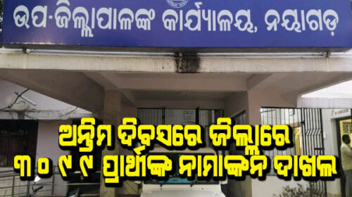 ଅନ୍ତିମ ଦିବସରେ ଜିଲ୍ଲାରେ ୩୦୯୯ ପ୍ରାର୍ଥୀଙ୍କ ନାମାଙ୍କନ ଦାଖଲ