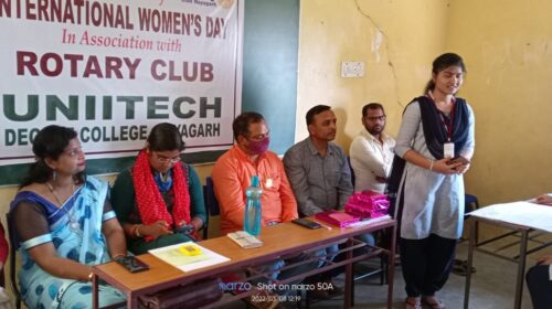 ନୟାଗଡ଼,(ନୟାଗଡ଼ ଦର୍ପଣ): ରୋଟାରୀ କ୍ଲବ ଏବଂ ୟୁନିଟେକ କଲେଜ, ନୟାଗଡର ମିଳିତ ଆନୁକୂଲ୍ୟରେ ଆଜି ଆନ୍ତର୍ଜାତୀୟ ମହିଳା ଦିବସ ପାଳିତ ହୋଇଯାଇଛି । ଏହି କାର୍ଯ୍ୟକ୍ରମର ମୂଖ୍ୟ ଅତିଥି ସହକାରୀ କୃଷି ଅଧିକାରୀ ଶ୍ରୀମତୀ ମୁକ୍ତିଲିନା ମୋନିକା, ନୟାଗଡ଼ ରୋଟାରୀ କ୍ଲବର ସଭାପତି ରୋଟାରିଆନ ଧିରେନ୍ଦ୍ର ପଟ୍ଟନାୟକ ଏବଂ ଇନରହୁଇଲ କ୍ଲବର ସଭାପତି ସ୍ମିତା ସ୍ବାଇଁ, ଆୟୋଜିତ ସଭାରେ ଉଦବୋଧନ ଦେଇ ନାରୀ ସଶକ୍ତିକରଣ ଉପରେ ଗୁରୁତ୍ବ ଦବା ସହ ଉପସ୍ଥିତ ଛାତ୍ରୀ ମାନଙ୍କର ଉଜ୍ଜ୍ବଳ ଭବିଷ୍ୟତର କାମନା କରିଥିଲେ । ଏହି ସଭାକୁ ପରିଚାଳନା କରିଥିଲେ ୟୁନିଟେକ କଲେଜର ନିର୍ଦ୍ଧେଶକ ରୋଟାରିଆନ ପ୍ରବୀର ପୃଷ୍ଟି ।