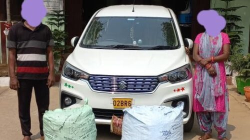 ଗଞ୍ଜେଇ ଚୋରାଚାଲାଣ ବେଳେ ଦମ୍ପତି ଗିରଫ, କାର ସହ ୨ବସ୍ତା ଗଞ୍ଜେଇ ଜବତ