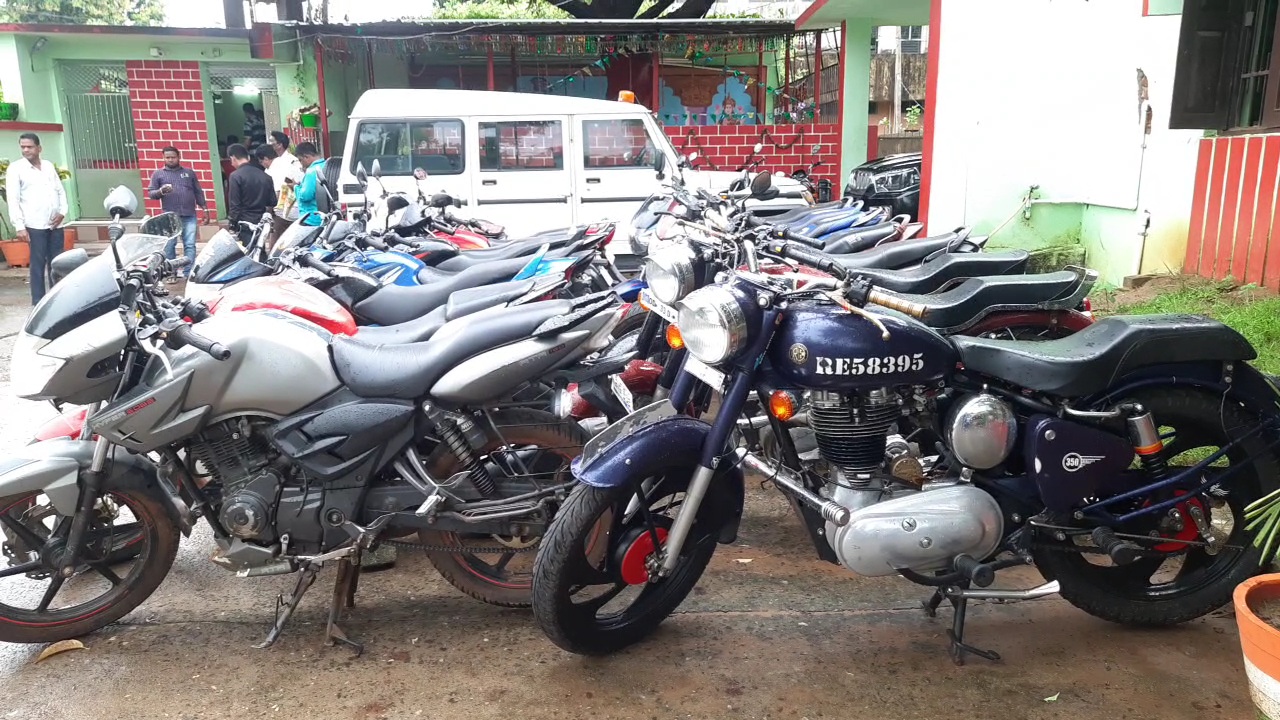 ନୟାଗଡ଼,(ନୟାଗଡ଼ ଦର୍ପଣ): ନୟାଗଡ଼ ଟାଉନ ଥାନା ପାଲଟିଛି ମୋଟର ସାଇକେଲ ସୋରୁମ। ବିଭିନ୍ନ କମ୍ପାନୀର ଏତେ ପରିମାଣରେ ମୋଟର ସାଇକେଲ ଦେଖି ଆପଣ ଭାବୁଥିବେ ଥାନା ପରିସରରେ ଚାଲିଛି ମୋଟର ସାଇକେଲ ମେଳା। କିନ୍ତୁ ନାଇଁ ଆଜ୍ଞା ଏ ହେଉଛି ସବୁ ଲୁଟେରାଙ୍କ ଦ୍ୱାରା ଚୋରି ହୋଇଥିବା ମୋଟର ସାଇକେଲ। ରାଜ୍ୟର ବିଭିନ୍ନ ସ୍ଥାନରୁ ନିର୍ଜନ ସ୍ଥାନରୁ ଲୋକଙ୍କୁ ଟାର୍ଗେଟ କରି ବହୁ ନାମୀଦାମୀ ଗାଡ଼ିଗୁଡିକୁ ଚୋରି କରି ବିଭିନ୍ନ ଅପରାଧିକ କାର୍ଯ୍ୟରେ ନିୟୋଜିତ କରୁଥିଲେ ଏହି କୁଖ୍ୟାତ ଡ଼କାୟତ ଗ୍ୟାଙ୍ଗ। ପୋଲିସ ତରଫରୁ ଏହି ଗ୍ୟାଙ୍ଗକୁ ଧରିବା ପାଇଁ ସ୍ୱତନ୍ତ୍ର ଟିମ ଗଠନ କରାଯାଇଥିଲା।