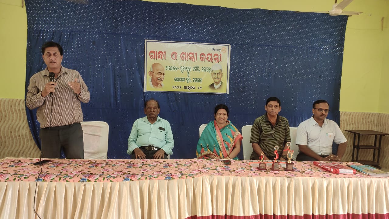 ନୟାଗଡ଼,(ନୟାଗଡ଼ ଦର୍ପଣ): ନୟାଗଡ଼ ଖଣ୍ଡପଡାରୋଡ ସ୍ଥିତ ରୋଟାରୀ ଭବନ ଠାରେ ପୂଜ୍ୟପୂଜା କମିଟି ନୟାଗଡ଼ ଓ ରୋଟାରୀ କ୍ଲବ୍ ନୟାଗଡ଼ ତରଫରୁ ଜାତିର ପିତା ମହାତ୍ମା ଗାନ୍ଧୀଙ୍କ ୧୫୩ ତମ ଜୟନ୍ତୀ ଓ ଭାରତର ଦ୍ବିତୀୟ ପ୍ରଧାନମନ୍ତ୍ରୀ ଲାଲ ବାହାଦୂର ଶାସ୍ତ୍ରୀଙ୍କ ୧୧୮ ତମ ଜୟନ୍ତୀ ମହାସମାରୋହରେ ପାଳିତ ହୋଇ ଯାଇଛି। ପୂଜ୍ୟପୂଜା କମିଟିର ସଭାପତି ପ୍ରଫେସର ରାମଚନ୍ଦ୍ର ମିଶ୍ରଙ୍କ ଅଧ୍ଯକ୍ଷତାରେ ଅନୁଷ୍ଠିତ ଏହି କାର୍ଯ୍ୟକ୍ରମରେ ମୁଖ୍ଯ ଅତିଥି ଭାବେ ନୟାଗଡ଼ ପୌରପରିଷଦର ପ୍ରଥମ ମହିଳା ଅଧ୍ଯକ୍ଷା ନିରୁପମା ଖଟେଇ ଯୋଗଦେଇ ସ୍ବର୍ଗତ ମହାପୁରୁଷ ମାନଙ୍କ ସ୍ମ୍ରୁତି ଚାରଣ କରିଥିଲେ। ବିଶିଷ୍ଟ ସାହିତ୍ଯିକ ତଥା ବରିଷ୍ଠ ସାମ୍ବାଦିକ ରାମକୃଷ୍ଣ ରଥ କାର୍ଯ୍ୟକ୍ରମକୁ ସଂଯୋଜନା କରିଥିଲାବେଳେ ପୂଜ୍ୟପୂଜା କମିଟିର ଉପଦେଷ୍ଟା ସୁବୋଧ କୁମାର ପଟ୍ଟନାୟକ,ସଂପାଦକ ଅରୁଣ କୁମାର ମହାନ୍ତି ଓ ରୋଟାରୀ କ୍ଲବ୍ ସଭାପତି ପ୍ରବୀର କୁମାର ପ୍ରୁଷ୍ଟି ମଞ୍ଚାସୀନ ଥିଲେ।