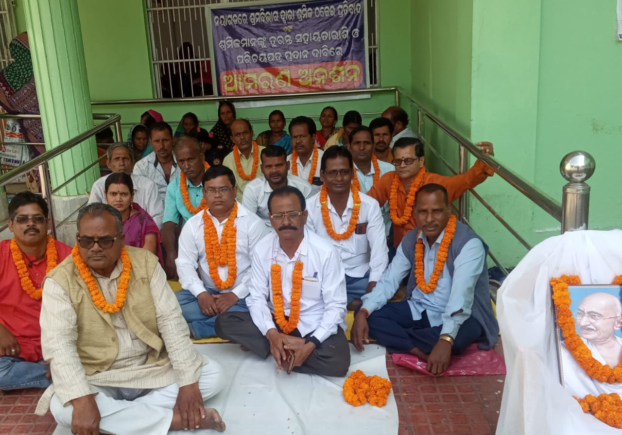 ମଧ୍ୟରେ ପ୍ରଦାନ କରିବା, ବିବାହ ସହାୟତା ନଭେମ୍ବର ୧୫, ଅନ୍ୟାନ୍ୟ ୪୫ ଦିନ ମଧ୍ୟରେ ପ୍ରଦାନ କରାଯିବାକୁ ପ୍ରତିଶୃତି ଦେଇଥିଲେ । ମାତ୍ର ପ୍ରତିଶୃତି ପାଣିର ଗାର ପାଲଟି ଯାଇଥିଲା । ଦୀର୍ଘଦିନ ବିତିଥିଲେ ବି ଆଜି ପର୍ଯ୍ୟନ୍ତ ପ୍ରତିଶୃତି ମୁତାବକ କୌଣସି କାର୍ଯ୍ୟପନ୍ଥା ଗ୍ରହଣ କରାଯାଇନାହିଁ । ଯାହାକୁ ନେଇ ଶ୍ରୀ ସାଇ ନିର୍ମାଣ ଶ୍ରମିକ ସେବା ପ୍ରତିଷ୍ଠାନ ସଭାପତି ବାସୁଦେବ ମହାନ୍ତି, ବିଜୁ ଶ୍ରମିକ ସାମ୍ମୁଖ୍ୟ ସହ ସମ୍ପାଦକ ଶ୍ରୀକାନ୍ତ ପଟ୍ଟନାୟକ ଆଜିଠାରୁ ଜିଲ୍ଲାପାଳଙ୍କ କାର୍ଯ୍ୟାଳୟ ଆଗରେ ଆମରଣ ଅନଶନରେ ବସିଛନ୍ତି । ଶ୍ରମ ଅଧିକାରୀଙ୍କ ବିରୁଦ୍ଧରେ କାର୍ଯ୍ୟାନୁଷ୍ଠାନ ଗ୍ରହଣ କରାଯିବା ସହ ପଡ଼ିରହିଥିବା ଆବେଦନ ଗୁଡ଼ିକ ବିଚାର କରି ସହାୟତା ପ୍ରଦାନ ପାଇଁ ଦାବି କରିଛନ୍ତି। ଜିଲ୍ଲା ଶ୍ରମ କାର୍ଯ୍ୟାଳୟରେ ୧୦୯ଜଣଙ୍କର ମୃତ୍ୟୁ କାଳୀନ ସହାୟତା, ୩୩୪ ଜଣଙ୍କର ଝିଅ ବିବାହ ସହାୟତା, ୧୪୧୩ ଜଣଙ୍କର ବିବାହ ସହାୟତା, ୭ ଜଣ ଅଣସଂଗଠିତ ଶ୍ରମିକଙ୍କ ମୃତ୍ୟୁ କାଳୀନ ସହାୟତା ଆବେଦନ ପଡ଼ି ରହିଛି । ଏହି ଆମରଣ ଅନଶନକୁ ବିଜୁ ଜନତା ଦଳ ଉପସଭାନେତ୍ରୀ ପ୍ରଭାସିନୀ ନନ୍ଦ, ଜିଲ୍ଲା କମ୍ୟୁନିଷ୍ଟ ନେତା ବିଶ୍ୱନାଥ ମହାପାତ୍ର, ଜିଲ୍ଲା କଂଗ୍ରେସ ସଭାପତି ରଞ୍ଜିତ ଦାସ, ଜିଲ୍ଲା ଅଙ୍ଗନବାଡ଼ି କର୍ମଚାରୀ ସଂଘ ସମର୍ଥନ ଦେଇ ଧାରଣାରେ ବସିଥିବା ଦେଖାଯାଇଛି।