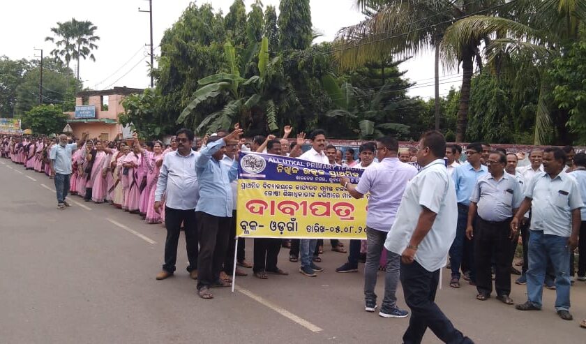 ମାତ୍ର ତାହା ପୂରଣ ନ ହେବାରୁ ବାରମ୍ବାର ଶିକ୍ଷକ ପ୍ରତିନିଧିମଣ୍ଡଳୀ ଶିକ୍ଷା ସଚିବ, ମୁଖ୍ୟ ଶାସନ ସଚିବ, ବିଭାଗୀୟମନ୍ତ୍ରୀ, ବିଧାୟକ ଏପରିକି ଖୋଦ୍ ମୁଖ୍ୟମନ୍ତ୍ରୀଙ୍କ ବ୍ୟକ୍ତିଗତ ସଚିବ ଭି.କାର୍ତ୍ତିକେୟନ୍ ପାଣ୍ଡିଆନଙ୍କୁ ଭେଟି ଦାବୀ ଜଣାଇଥିଲେ ମଧ୍ୟ ଏପର୍ଯ୍ୟନ୍ତ ତାହା ପ୍ରଶାସନ ଆଢୁଆଳରେ ରହିଛି।ତେଣୁ ଆସନ୍ତା ୧୧ ତାରିଖରେ ସମଗ୍ର ଜିଲ୍ଲା ସ୍ତରରେ ଏବଂ ୧୬ ତାରିଖରୁ ସମଗ୍ର ରାଜ୍ୟରେ ସମୁହ ଛୁଟି ନେଇ ଶିକ୍ଷକ ଶିକ୍ଷୟିତ୍ରୀମାନେ ଆନ୍ଦୋଳନ କରି ସରକାରଙ୍କ ନିଦ ଭାଙ୍ଗିବାକୁ ନିଷ୍ପତ୍ତି ନେଇଛନ୍ତି।ଫଳରେ ସମଗ୍ର ରାଜ୍ୟର ବିଦ୍ୟାଳୟଗୁଡିକରେ ତାଲା ଝୁଲିବା ସହ ଏଥିପାଇଁ ସରକାର ଦାୟୀ ରହିବେ ବୋଲି ସଂଘ କହିଛି।ସମସ୍ତ ଠିକା ଶିକ୍ଷକମାନଙ୍କୁ ନିୟମିତ କରିବା, କେନ୍ଦ୍ରୀୟ ହାରରେ ୪୨୦୦ ଗ୍ରେଡପେ ଅନୁଯାୟୀ ବେତନ ପ୍ରଦାନ କରିବା ଓ ନୂତନ ପେନସନ ବ୍ୟବସ୍ଥା ଉଚ୍ଛେଦ କରି ପୁରୁଣା ପେନସନ ବ୍ୟବସ୍ଥା ଲାଗୁ କରିବା ଭଳି ତିନିଦଫା ସମ୍ବଳିତ ଦାବୀ ନେଇ ପ୍ରାଥମିକ ଶିକ୍ଷକ ସଂଘ,ଏନପିଏସ୍ ପ୍ରାଥମିକ ଶିକ୍ଷକ ସଂଘ,କନିଷ୍ଠ ଶିକ୍ଷକ ସଂଘ,ଏକ୍ସ କ୍ୟାଡର ଶିକ୍ଷକ ସଂଘ ଏବଂ କଳା ଓ କ୍ରୀଡ଼ା ଶିକ୍ଷକ ସଂଘ ଆଦି ମିଳିତ ଭାବେ ଉକ୍ତ ରାଲିରେ ଯୋଗ ଦେଇଥିଲେ।ମିଳିତ ପ୍ରାଥମିକ ଶିକ୍ଷକ ସଂଘ ଜିଲ୍ଲାସମ୍ପାଦକ ଭକ୍ତରଂଜନ ମିଶ୍ର ଓ ଏନପିଏସ୍ ବ୍ଲକ୍ ପ୍ରାଥମିକ ଶିକ୍ଷକ ସଂଘ ସଭାପତି ନରେଶ ପାଣିଗ୍ରାହୀ ଏହି ବିଶାଳ ରାଲିର ନେତୄତ୍ୱ ନେଇଥିଲେ।